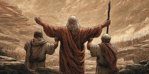 Moses stood where all could see, staff raised—no magic, just a visible confession: victory belongs to the Lord. When his arms drooped, Israel faltered; when Aaron and Hur braced them,
